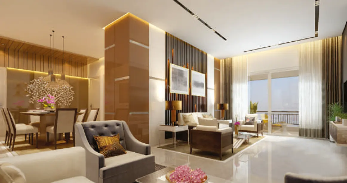 Living room / Bed room / Dining room with two coats of Putty finish and smooth finish of Emulsion paint over a single coat of Primer.